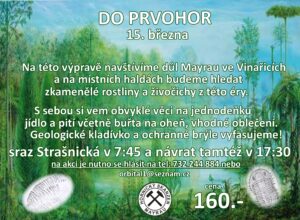 Navštívíme důl Mayrau ve Vinařicích a na místních haldách budeme hledat zkameněliny rostlin a živočichů z této éry.